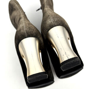 Vintage 80s Classique Black Brown Ombre Suede Cut-out Block Heel Zip Boot 8M