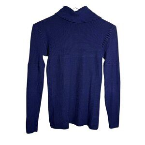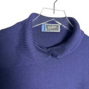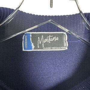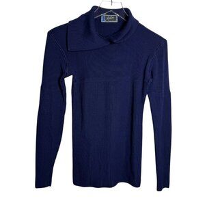 Vintage 80s Claude Montana womens sweater size Small navy blue asymmetric collar