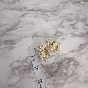 Vintage 80s Clip On Earrings Faux Pearl Bead Strands Dangle Statement 1.5" Retro