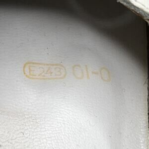 White leather shoes feature a cross stitched / laced detail all over. Lace up closure. Vintage 1980s.