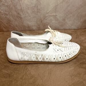 Vintage 80s Coasters White Leather Lace Up Flats Accent Stitching Women's 8.5