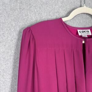 Vintage 80s Coco California Dress Medium Midi Pleated Drop Waist Bow Fuchsia USA Womens Long Sleeve Retro Glam Corp Career Work Office Business Church Shoulder Pads Loose Flowy Skirt