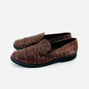 Vintage 80s Cole Haan Brown Woven Leather Loafers Made in Brazil