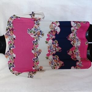 Vintage 80s Collared Blouse Pink/blue/white, cap sleeve, stretchy, M