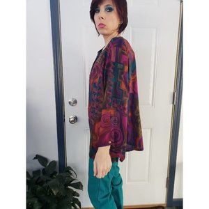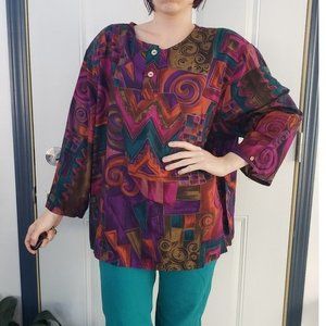 Tagged a size 20, shown here on a small. May run more like an 18 as vintage can rin 1 to 2 sizes small.