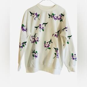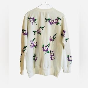 Vintage 80s White Hummingbird Floral Nature Sweatshirt Size Large Cal Pacific. The fleece is very soft. Measurements in pictures, review carefully. One tiny discoloration as shown.