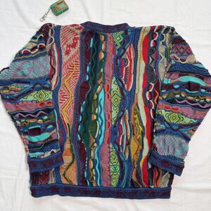 Authentic 80's Coogi sweater in good condition. Super colorful, 3D texture throughout. Has a couple of loose threads, and one corner of the tag needs reattached, no other flaws spotted.