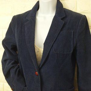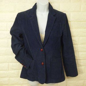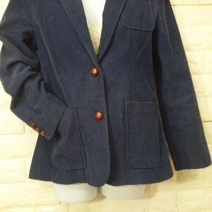 Vintage 80s Corduroy Blazer 2-Button Sport Jacket S/M Pockets Urban Preppy Navy