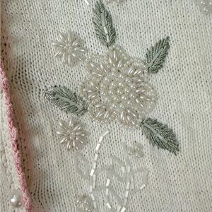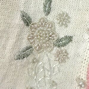 Vintage 80s Cottage Core Sweater Cardigan Beaded Floral Pearls Shabby Chic Large