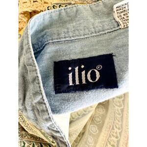 Vintage 80s Cottage Core Western Blouse Chambray Size Small Made USA Yellow Blue