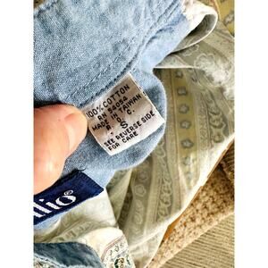 Vintage 80s Floral Print Cotton/Denim Button up Size Small USA Made Yellow Blue
