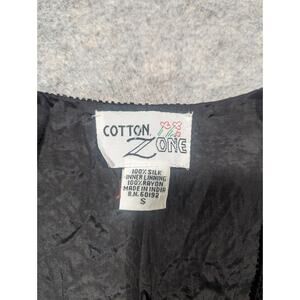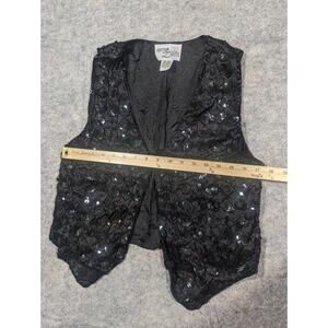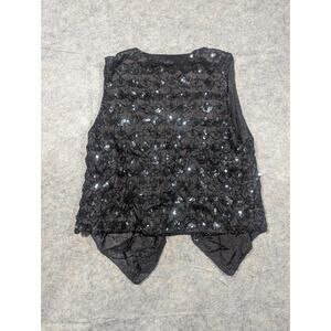 Vintage 80s Cotton Zone Black Silk Beaded All Over Sequins Vest Small Party