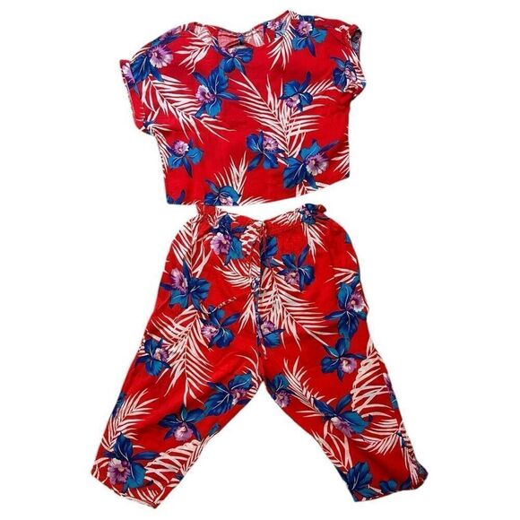 Vintage 80s Cotton Aloha 2 Piece Pant/Crop Top Set by LA Chic California