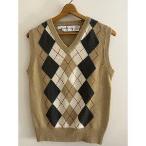 Vintage 80s Courtney Rhodes 100% Cashmere Sweater Vest 42’ Small Tan Green Ivory