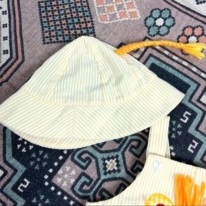 Cradlecraft vintage 80s seersucker romper with lion on front and matching hat with tail. Has 3 snap closure and button straps. Hat has an elastic chin strap.
