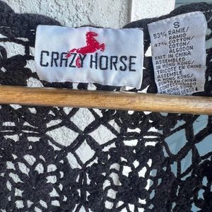 Vintage 80s Crazy Horse Gray Black Boho Hippie Crochet Vest Size Small Ramie