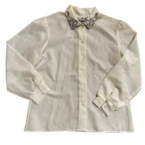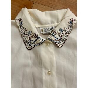 Vintage 80s Cream Paisley Embroidered Plus Sized Blouse XL