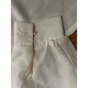 Corpcore meets Twee meets Whimsical Cottagecore in this plus sized 80s cream blouse from Inseparables. The blouse is a sheer poly with a playful cute collar that has embroidered scalloped edges and paisley designs. It's perfect to pair under a sweater, a tank dress or a blazer. It's tagged a size 16, but I'd say it best fits a 12/14. I wear a modern 14/16 (mostly 14 tops) with a 38C bust size. I have two from the same brand in the exact same size and color, but with different embroidery designs. The photos of me wearing a blouse is of the sister blouse that has ivy and flowers embroidered and is also available. I'm showing it for size/fit reference. It does pop a little at the chest where it buttons closed. So I wouldn't recommend it for anyone with a larger bust size than mine. I've also shown it styled under a wool tank dress (also available in the shop). Excellent condition.