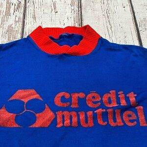 Vintage 80s Credit Mutuel Soccer Blue Sports 1980s Jersey Shirt