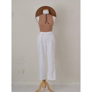Vintage gathered waist crisp white pants by Sara Morgan. Semi-sheer fabric with no stretch In good vintage condition