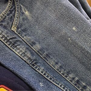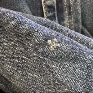 Condition: Fair vintage condition with light staining/discoloration and a few small holes. Distressed look, still fully wearable.