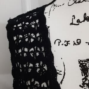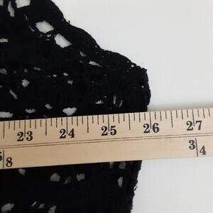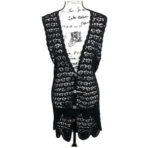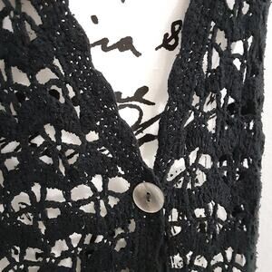 Vintage 80s Crochet Cardigan Black Bohemian Duster Knit Vest Lagenlook Festival