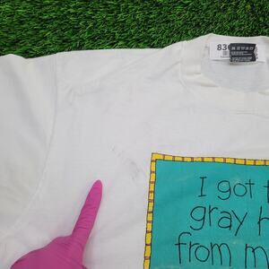 Show off your playful side with this vintage 80s bunny rabbit shirt! Cropped fit, USA-made with Fruit of the Loom tag—a charming retro piece.