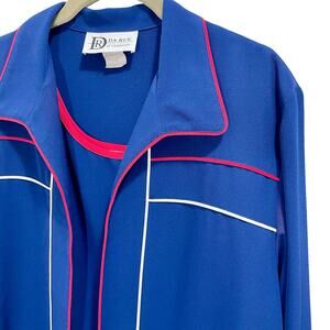 Step back in time with this beautiful vintage 80s Da Rue cardigan set! This set features a blue, red, and white color scheme.