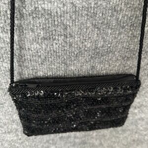 Vintage 80s Dancin Purse Womens Small Black Beaded Sequin Evening Shoulder Bag