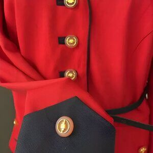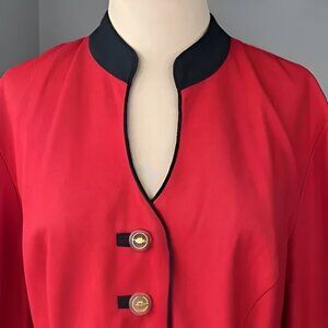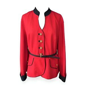 Vintage 80s Dani Max Red Black Gold Military Belted Blazer Dress Jacket XL 14