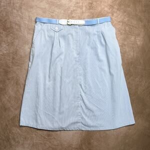 Vintage 80s Danielle of California Midi Skirt Belted White Blue Pinstripe NWT