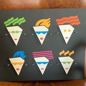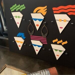 Vintage 80s art deco pop art earring holder. Foam core board; lightweight can hang on the wall or prop it up on a vanity table. Handmade circa 1992.