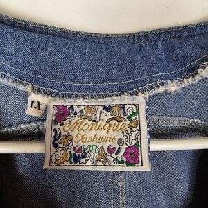 Vintage 80s Denim Floral Embroidered Beaded Button Up Shirt Tunic Mini Dress