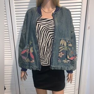 Vintage 80s Denim Jacket with floral print Bomber Women’s size 16