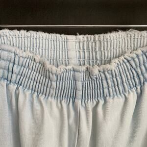 Item has distressing including to the elastic waistband and a small spot, as shown in photos.