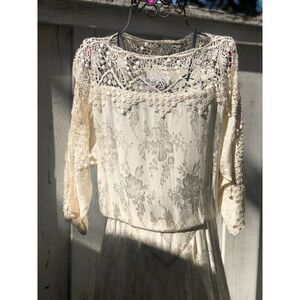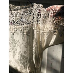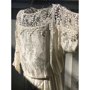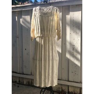 Vintage 80s Denise Fashions Lace Floral Embodied Mid Length Sleeves Hi-low Dress 7/8