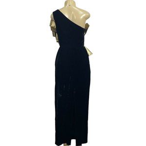 Vintage 80s Designer Gold Lame Fan One Sholder Avant Garde Cocktail Dress Size 3