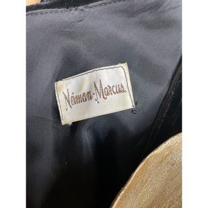 Vintage 80s designer cocktail dress by Neiman Marcus. Gold lame fan design on one shoulder adds an avant-garde touch. Size 3. Perfect for high-end vintage fashion lovers. It is in excellent vintage conditions with no holes, rips, or stains - please see pictures!