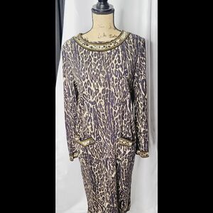 Vintage 80s Designer Robert Janan by Eva Cheetah Print Long Sleeve Dress