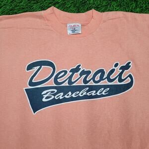 80s Detroit baseball tee in soft heathered coral with single stitch and Tigers vibe made in USA