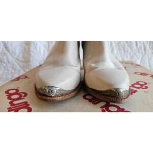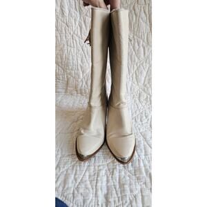 Vintage 80s Dingo Acme Women Boots 7M Ivory Leather Western Tassel