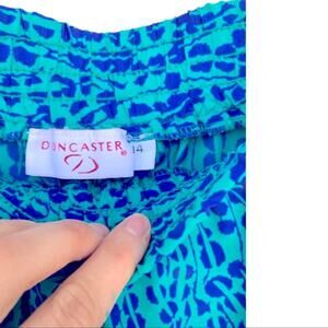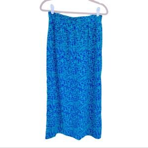 Vintage 80s Doncaster Teal and Blue Graphic Dot Print Midi Skirt