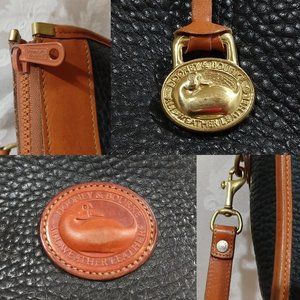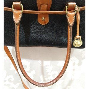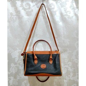 Vintage 80s Dooney & Bourke USA Brown Black Pebbled Leather Shoulder Satchel Bag