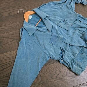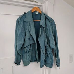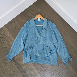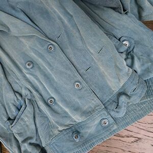 Vintage 80s Double Breasted Utility Cargo Loose Jacket in Storm Blue