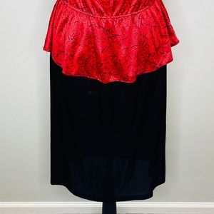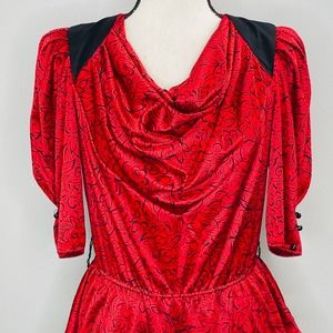 Vintage 80s Pea Patch Red and Black Peplum Dress with Cowl/Draped Neckline Puffed Sleeves Shoulder Pads and Elastic Waist Line Womens 9 Small Wiggle Dress Designing Women Career Cocktail Secretary