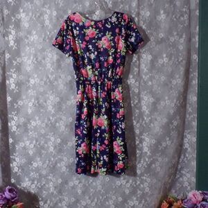Vintage 80s Dress 1980s Navy Blue Floral Pretty Boho Quirky Twee Size Medium P