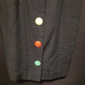 Vintage 80s Dress Black Large Rainbow Buttons Peri Petites Med Button Down