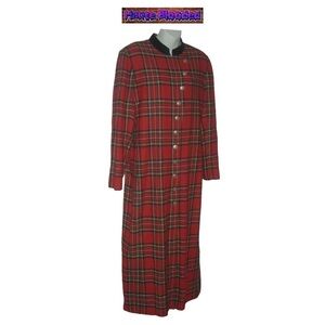 Vintage 80's Dress Cynthia Howie Red Tartan Duster Buttons Parisian Retro Royal