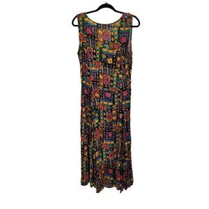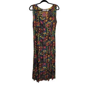 Vintage 80s Dress M Maxi Dopamine Jamaican Tropical Sleeveless MuMu Pinafore