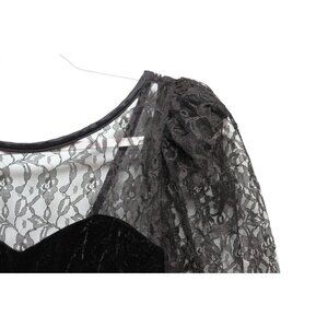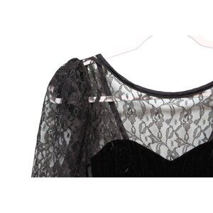 Vintage 80s Dress Size 5 Lace Black Velvet Goth Party Prom Steppin Out USA Bow